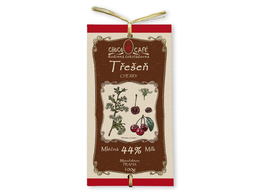 Exkluzivní ručně vyráběná tabulka ze 44% mléčné čokolády. Veliké kousky sušených třešní jsou během výroby sypány na povrch ještě tekuté čokolády ručně s maximální péčí. Dokonalá harmonie šťavnatého ovoce a lahodné čokolády v každém kousku.