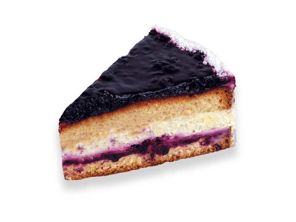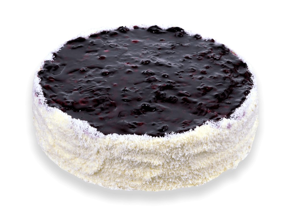Vanilkový lehký piškot plněný tvarohovo - šlehačkovým krémem, proložený a navrchu bohatě zdobený úžasně aromatickým černým rybízem, boky dortu jsou posypané kokosem. Jeden kousek Vám určitě nebude stačit.