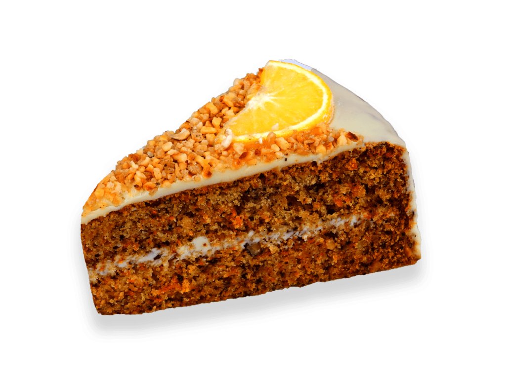 Složení: mouka, cukr, vejce, mrkev, pražené ořechy, mléko, čerstvá šlehačka, slunečnicový olej, bílá čokoláda, pomeranč, griliáš, želatina vegan